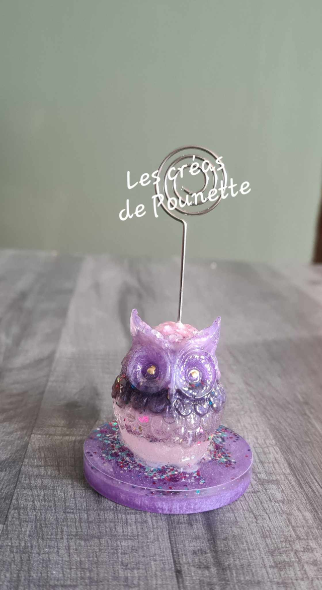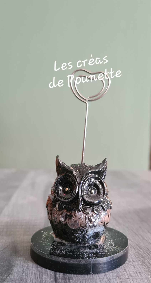 Porte photo chouette réalisée en résine, 6.5 cm environ